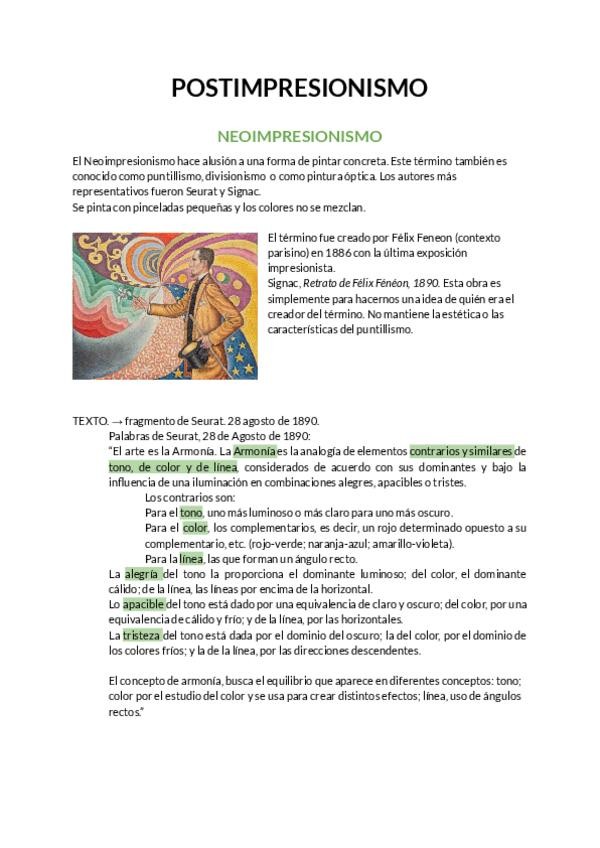Aquí están los apuntes del primer cuatrimestre de historia del arte. Tema 2 - postimpresionismo