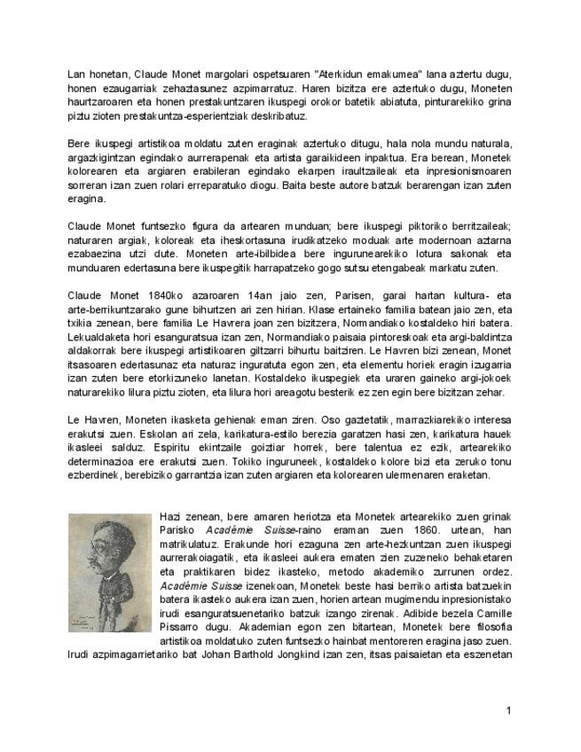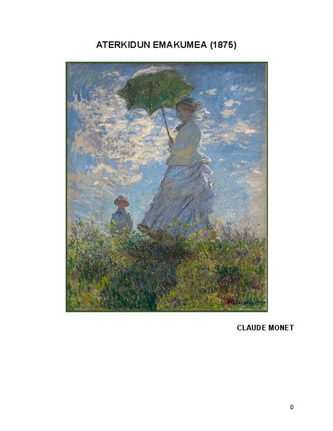 Aterkidun emakumea, Monet- Analisia (Testuinguru artistikoa, testuinguru historikoa, analisi formala, analisi sinbolikoa)