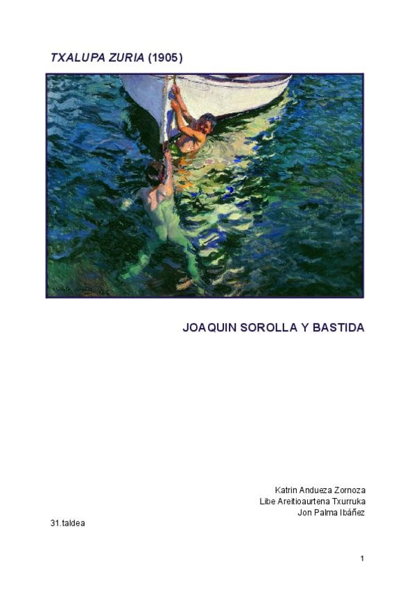 Txalupa zuria- Sorolla. Analisia. Testuinguru artistikoa, testuinguru historikoa, analisi formala, analisi sinbolikoa