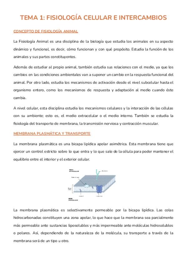 Apuntes de la asignatura Fundamentos de Fisiología Animal, todos los temas excepto el 8.