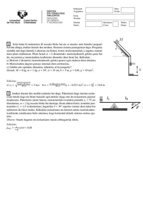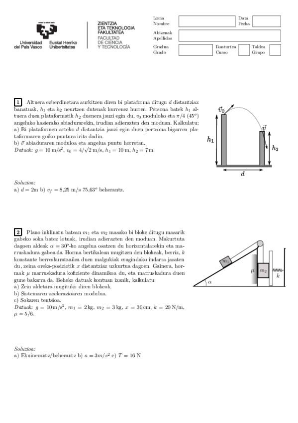 Hemen fisikako beste urteetako azterketak.