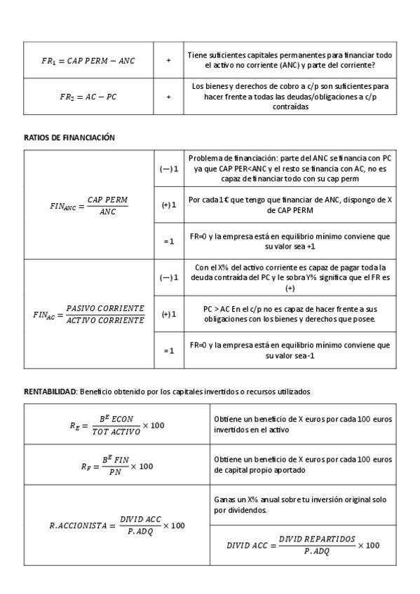 Gestión financiera apuntes curso entero: fórmulas de los ratios explicación de cada ratio, explicación apalancamiento...