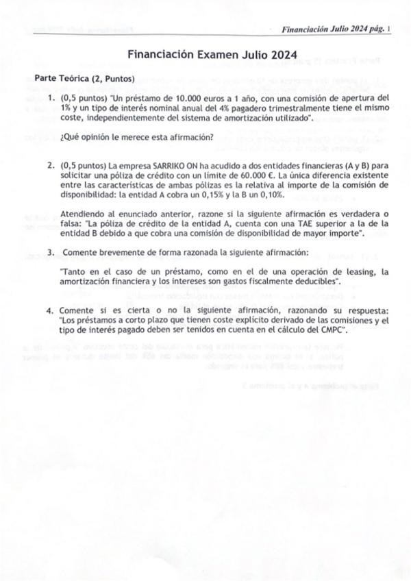 He publicado nuevos examenes de 2º Dirección Financiera: Financiación: Examen JULIO 2024 - Resuelto