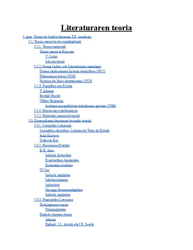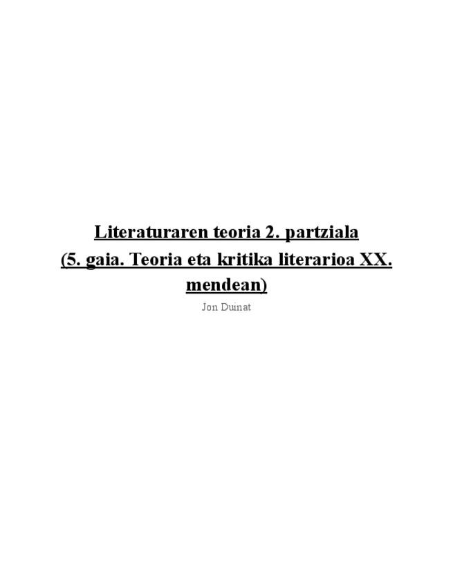 He publicado nuevos apuntes de 2º Teoria de la Literatura: Literaturaren teoria. 2. partziala (5. gaia. Teoria eta kritika literarioa XX. mendean).pdf