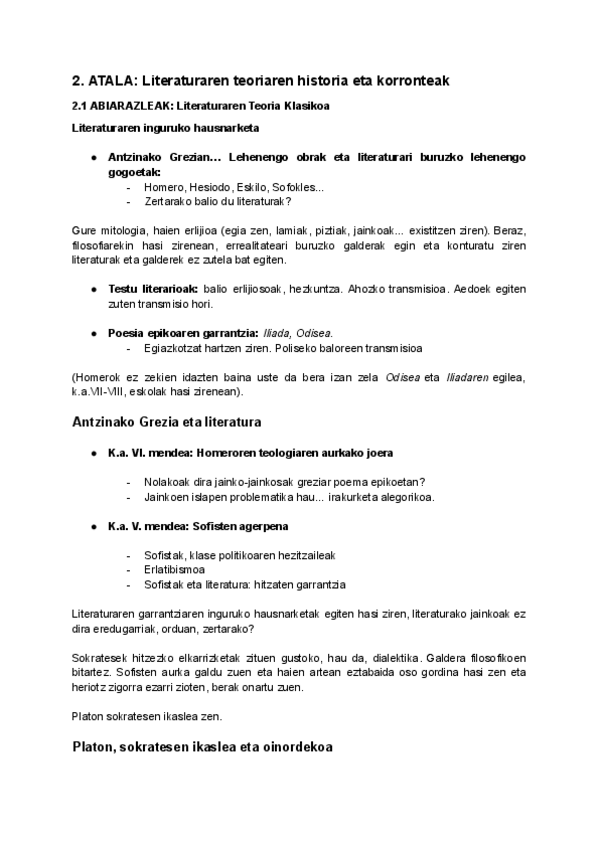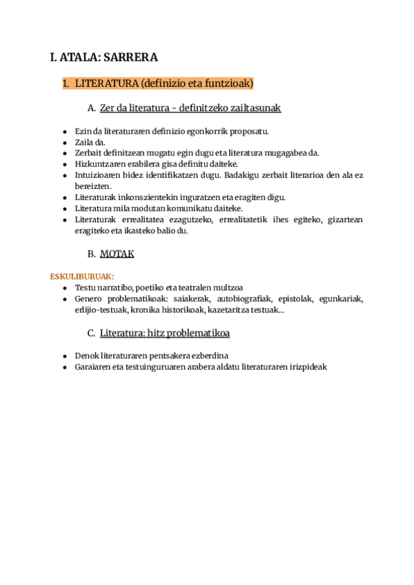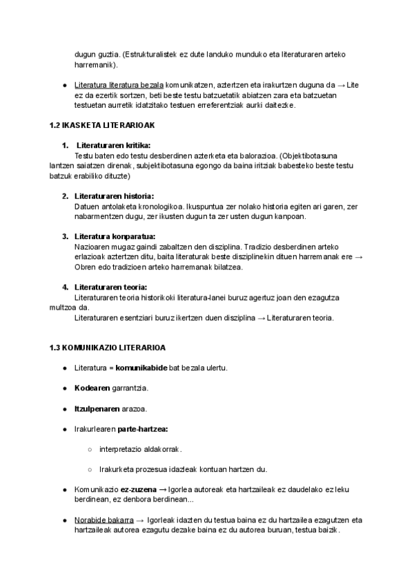 Euskal Ikasketetako lehenengo urteko Literaturaren Teoriako 1.partzialeko apunteak. 2025/26 ikasturtea. Literaturaren definizioa, historia, korronteak, abiarazleak.