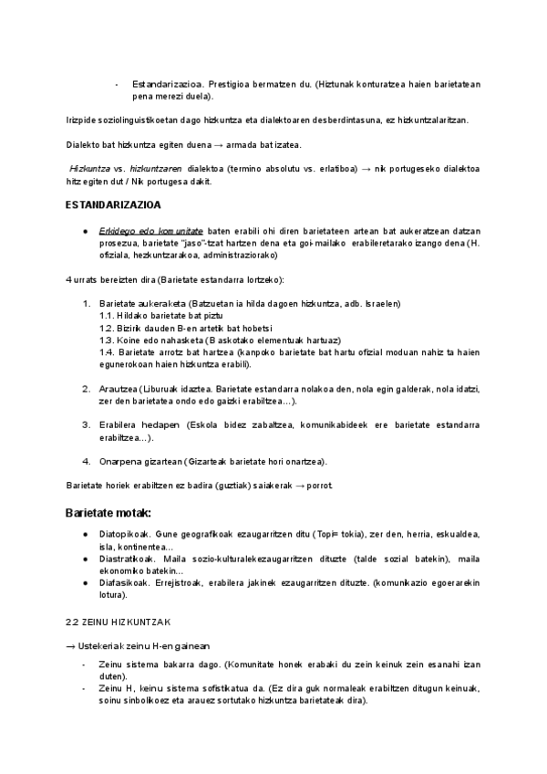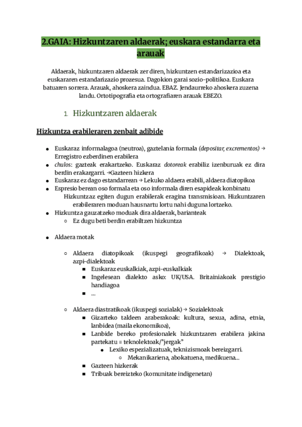 Aldaerak, hizkuntzaren aldaerak zer diren, hizkuntzen estandarizazioa eta euskararen estandarizazio prozesua. Dagokion garai sozio-politikoa. Euskara batuaren sorrera. Arauak, ahoskera zaindua. EBAZ. Jendaurreko ahoskera zuzena landu. Ortotipografia eta o