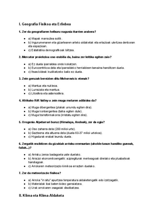 Geografia azterketak prestatzeko test motako 30 galdera, auto-zuzenketa eta guzti . Geografia Fisikoa eta Erliebea: Tektonika eta orogenia. Klima: Foehn efektua, Köppen sailkapena eta aldaketa klimatikoa Demografia: Trantsizioa, zahartzea eta migrazioak.