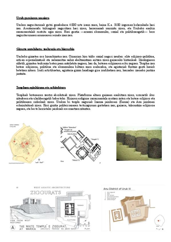 Sumeriar Lehenengo Dinastiak (K.a. 2900-2300). Apunteak euskaraz, "kalitatea eta ordena" ardatz: -Arkitektura: Jafacheko tenplu obalatua. -Eskultura: Tell Asmarko otoizlariak (kaunakos), Ebih-Il eta Gudea Lagashekoa. -Erliebeak: Putreen Estela eta Ur-Nan
