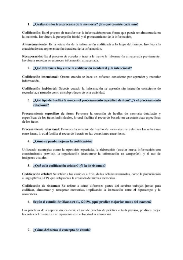 He publicado nuevos apuntes de 2º Memoria y toma de decisiones: Psicología de la memoria