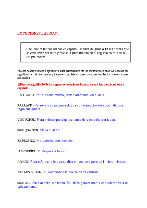 Locuciones latinas 1º Bachillerato.