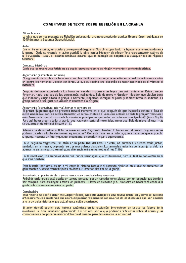 Comentario de texto separado por partes, del libro Rebelion en la granja