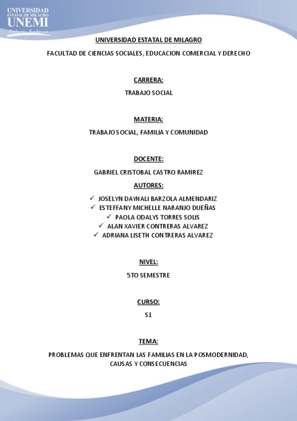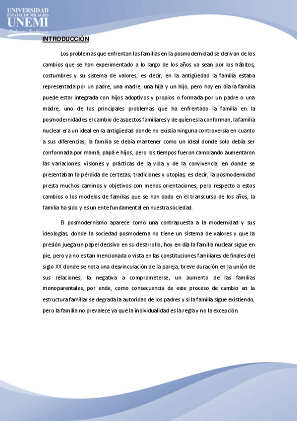 PROBLEMAS QUE ENFRENTAN LAS FAMILIAS EN LA POSMODERNIDAD, CAUSAS Y CONSECUENCIAS
