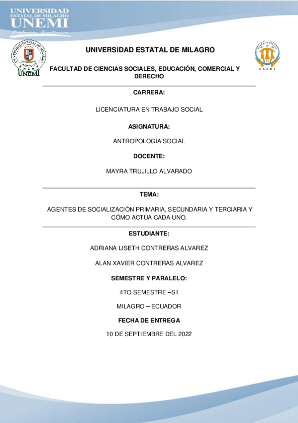 AGENTES DE SOCIALIZACIÓN PRIMARIA, SECUNDARIA Y TERCIARIA Y CÓMO ACTÚA CADA UNO