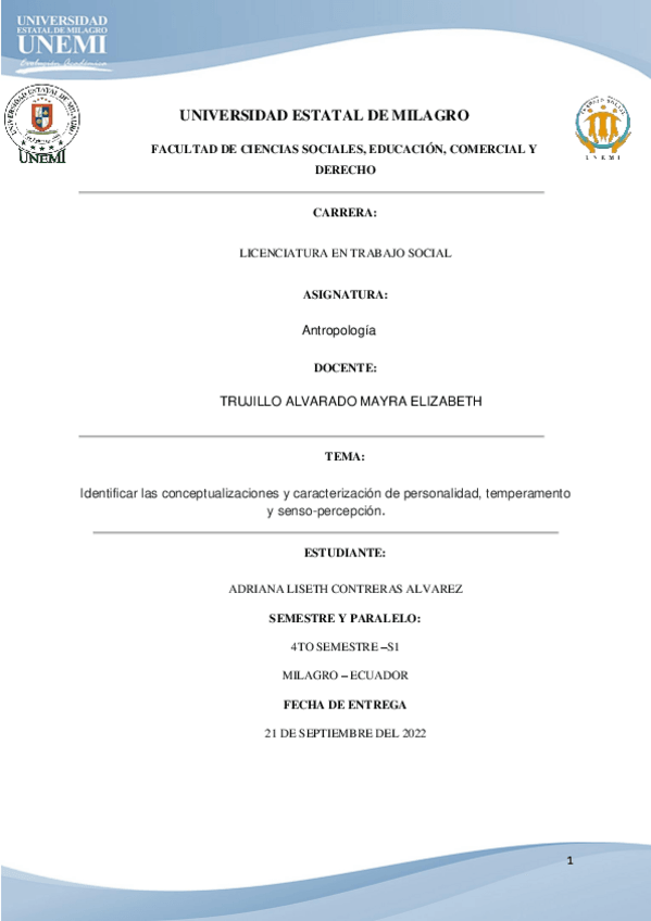 Identificar las conceptualizaciones y caracterización de personalidad, temperamento y censo-percepción