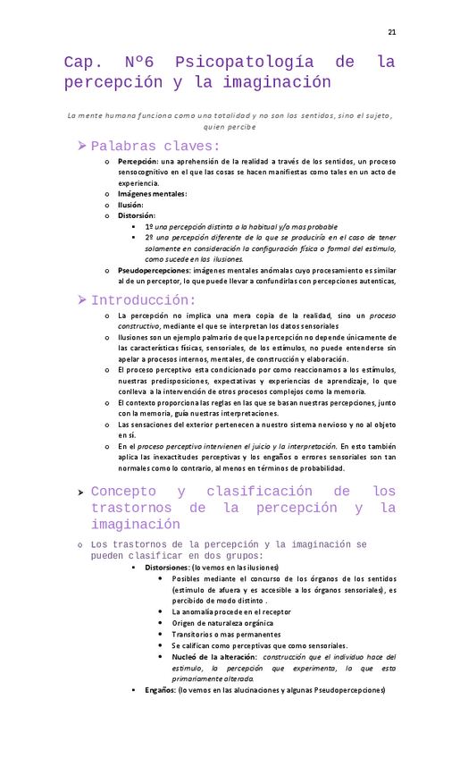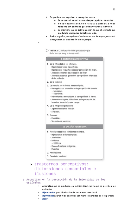 es un resumen de los trastornos de la percepcion y la imaginacion del texto de Bellosh