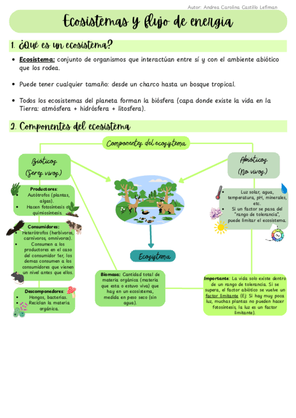 Aprende y repasa de forma clara y ordenada los conceptos clave sobre ecosistemas y flujo de energía. Este apunte está diseñado para estudiantes de 1° medio e incluye explicaciones detalladas, ejemplos y esquemas fáciles de entender para reforzar el estudi