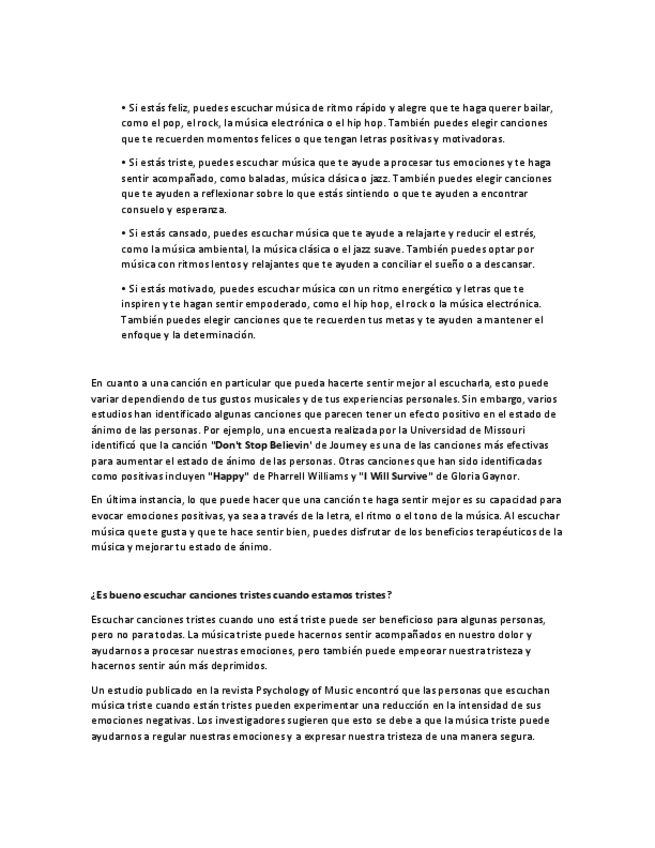 Ensayo, Como afecta la música a nuestro estado de animo