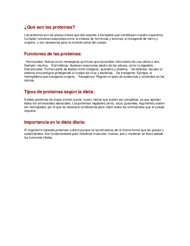 Explicación, de las proteinas,funciones,tipos,importancia y con incluso preguntas resueltas para repasar el tema