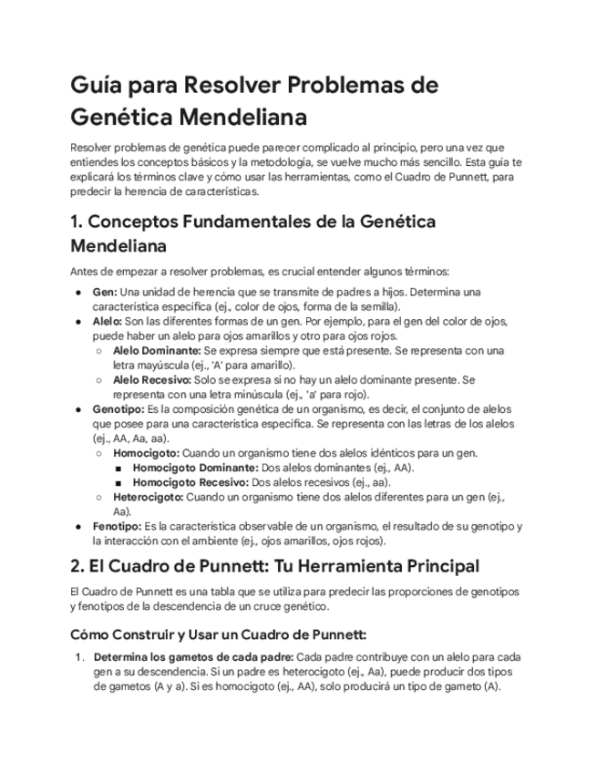 guia sobre la genética de Mendel explicacion de: como hacer el cuadro de punnet algunos términos de la genética y mas