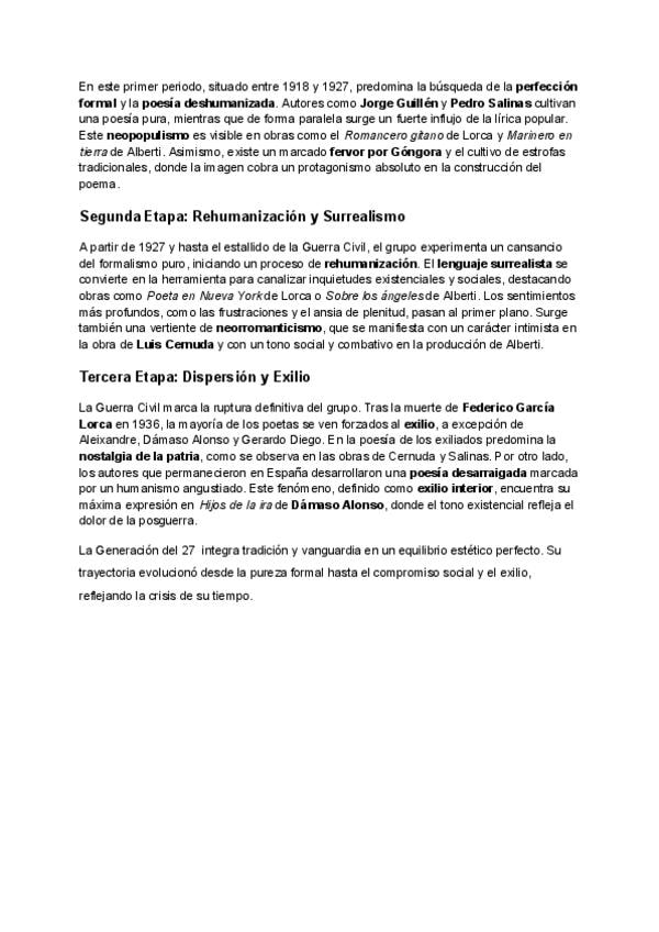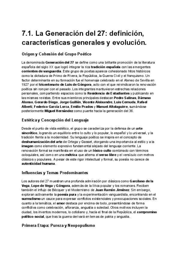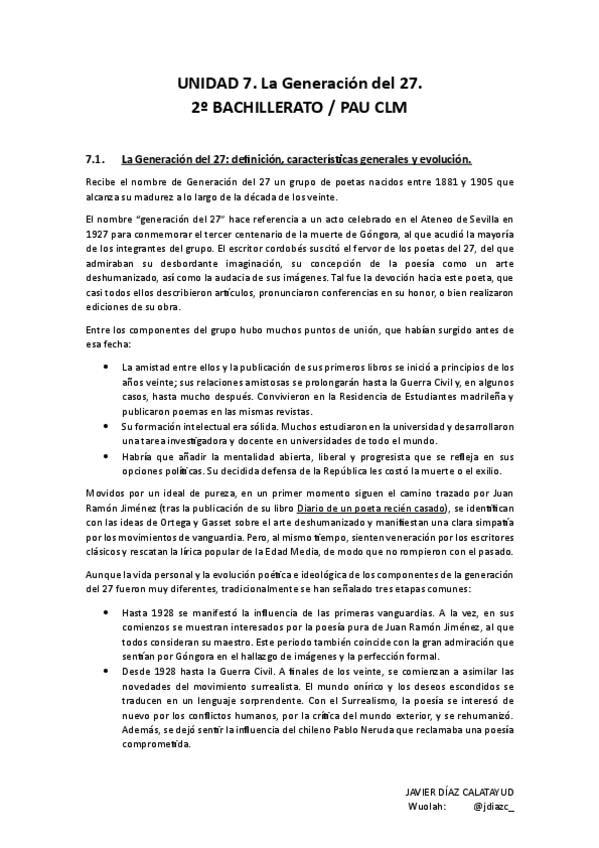 Resumen Generación del 27. Lengua castellana y literatura II - UNIDAD 7 PAU CLM