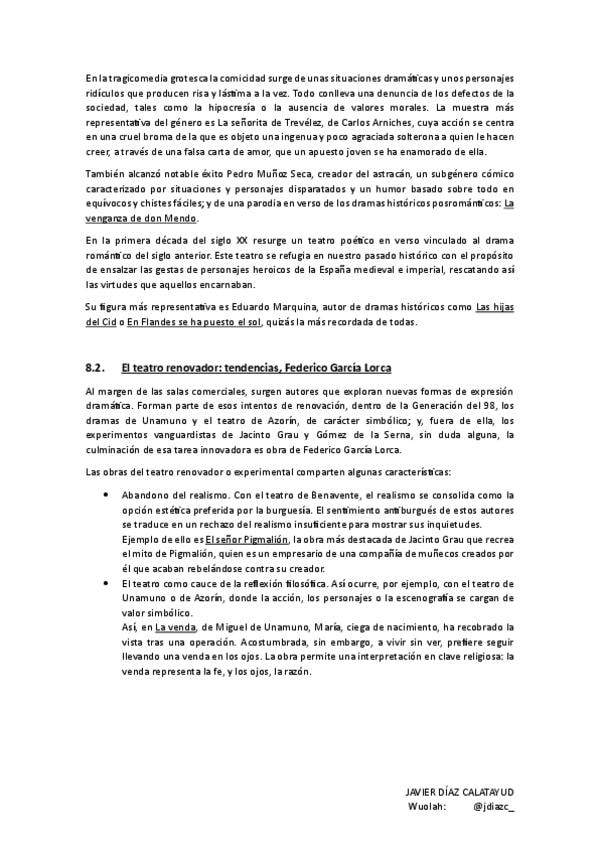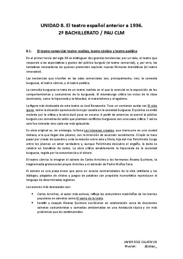Resumen El teatro español anterior a 1936. Lengua castellana y literatura II - UNIDAD 8 PAU CLM