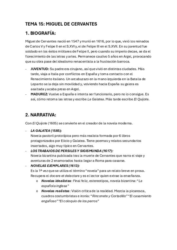 toda la teoría de Cervantes y, argumento, personajes, estilo, técnicas narrativas, intención y estilo, publicación e imitación y temas del Quijote