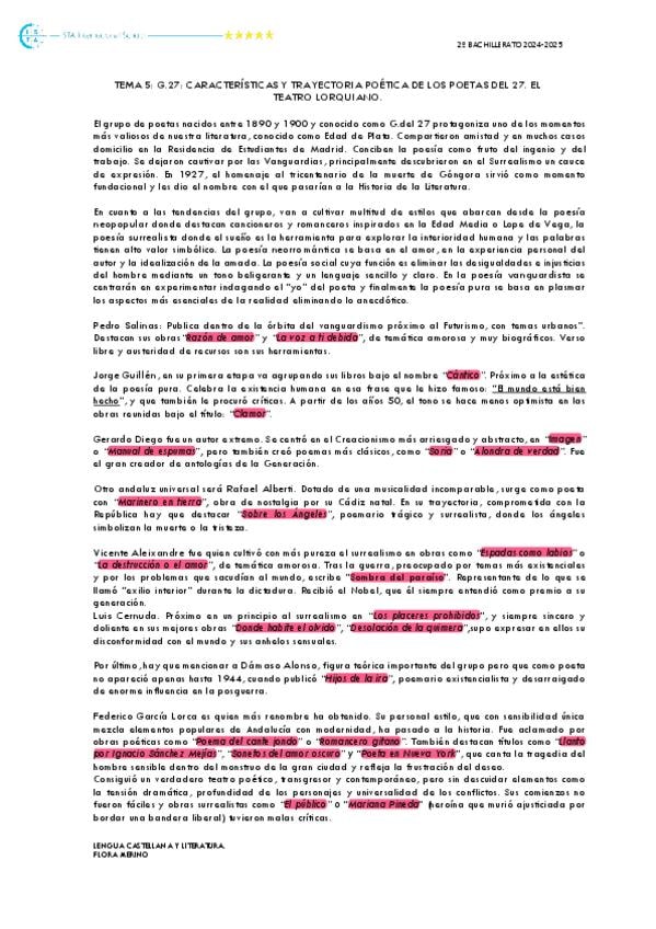 Apuntes completos de la generación del 27 y las sinsombrero para pau