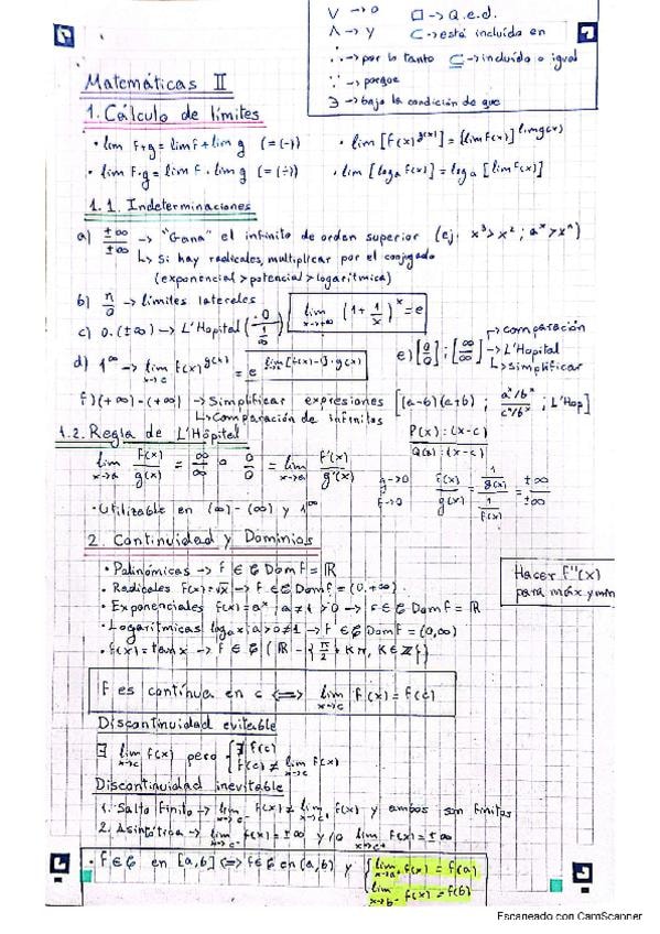 Resumen completo de la asignatura Matemáticas II para preparar la PAU