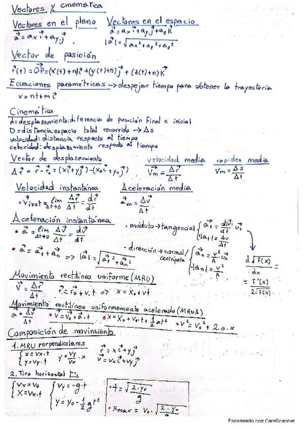 Resumen/Formulario de la parte de física de la asignatura Física y Química de 1º de Bachillerato