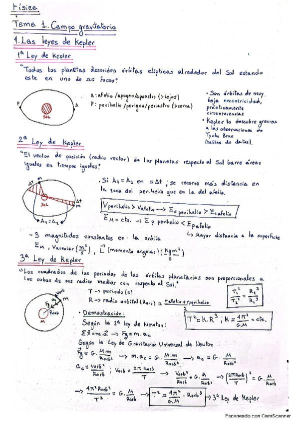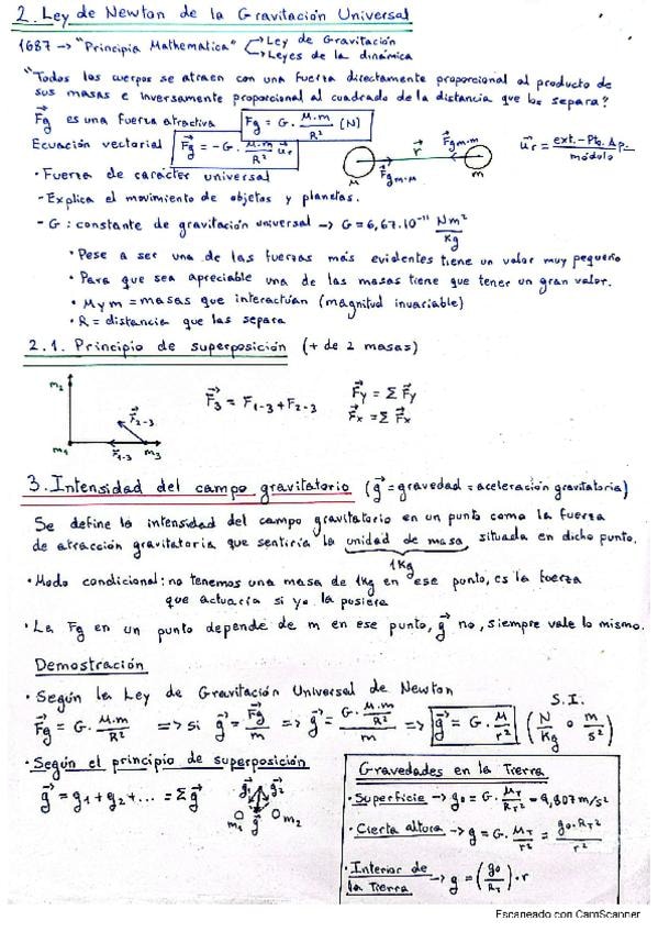 Apuntes completos del primer bloque de Física II para la PAU: Gravitación. Incluyen todo el contenido necesario para preparar el examen, así como un formulario para repasar.
