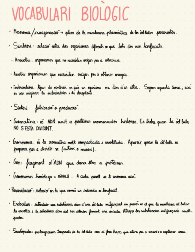 Apunts de nivell de 4t d’ESO sobre la cèl·lula en català/valencià (mitosi, meiosi, interfase, orgànuls, diferències, funcions…) (31 fulles + vocabulari biològic + exercisis corregits) (correccions més extenses i menys, segons la profunditat a la que vulgu