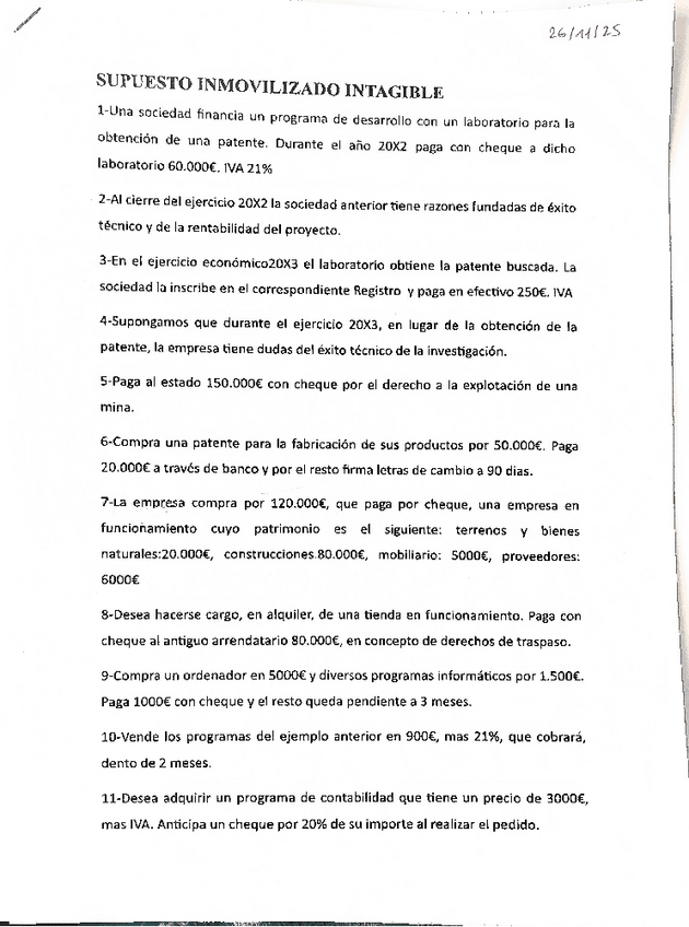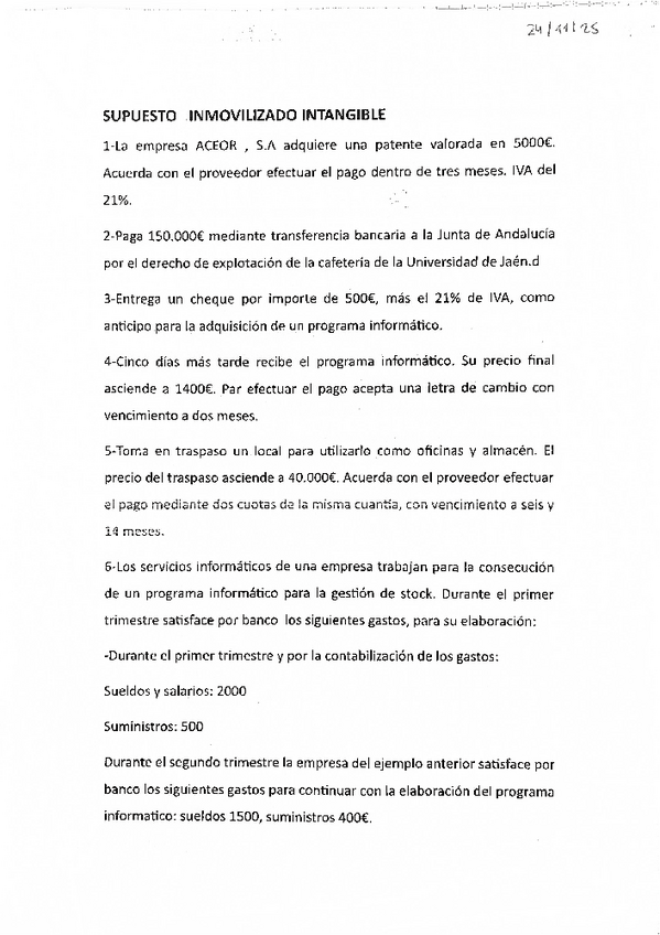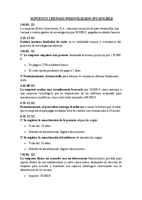 Supuesto 2 para repasar inmovilizado intangible