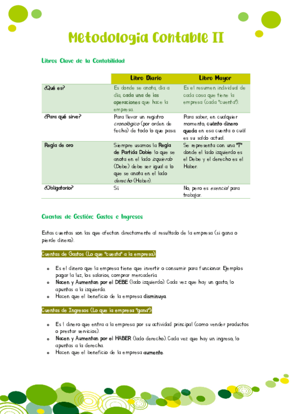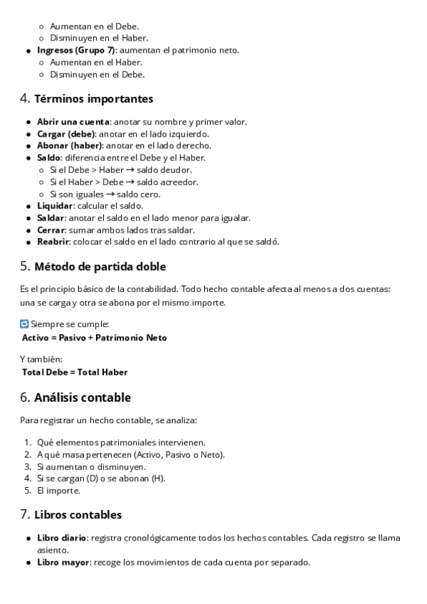 Ciclo contable, Libro diario (asiento de apertura, registro de operaciones, asientos de regularización, asientos de cierre), Libro Mayor, Balance de comprobación y más..