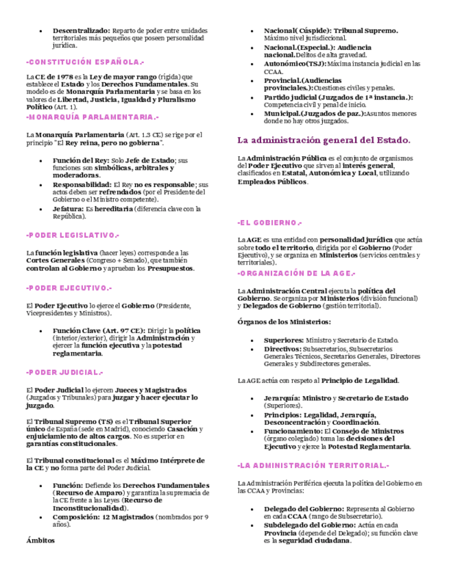 Estructura y organización de las administraciones públicas y la Unión Europea.