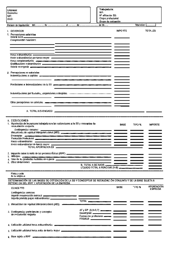 Salario Nómina Bases de cotización a la Seguridad Social Tipos de cotización Calculo de la retención a la cuenta del IRPF
