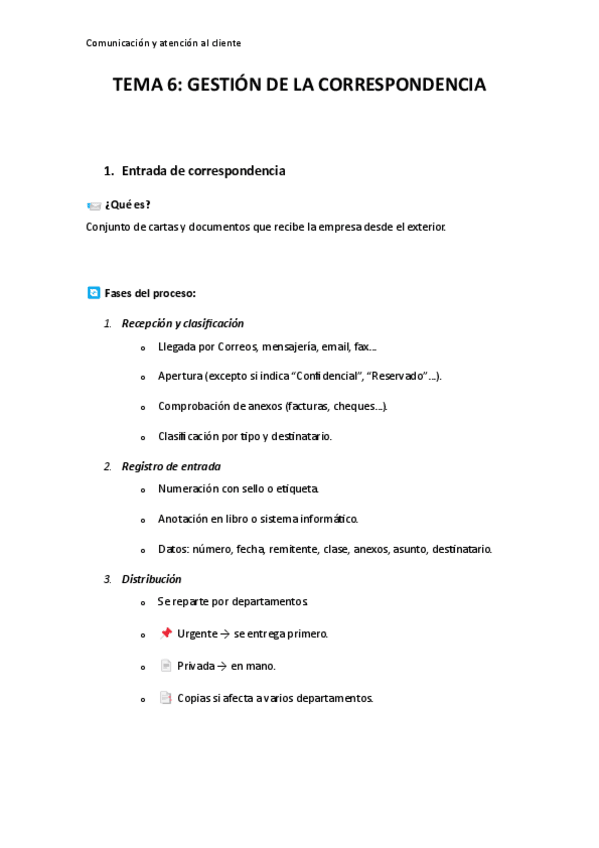 Apuntes de resumen del Tema 6: Gestión de la correspondencia.