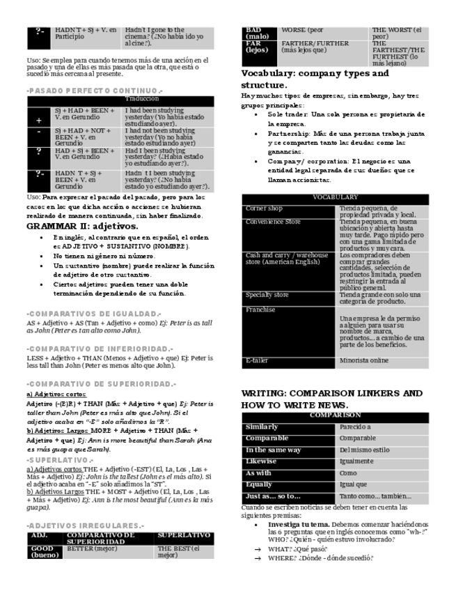 Tiempos verbales pasados, adjetivos, noticias, linkers de comparación y pronunciación "-ed"