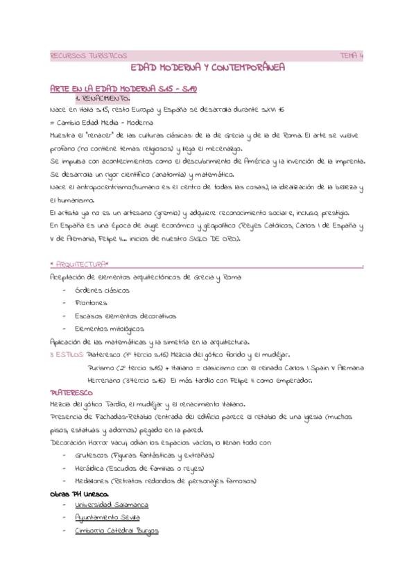 RECURSOS TURISTICOS: EDAD MODERNA Y COTEMPORANEA