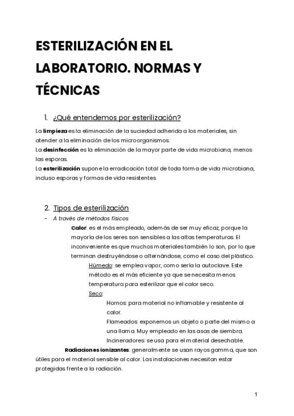 Apuntes sobre los siguientes temas: - ESTERILIZACIÓN EN EL LABORATORIO. NORMAS Y TÉCNICAS - DUPLICACIÓN DEL MATERIAL GENÉTICO. ETAPAS DE LA SÍNTESIS PROTEICA - FUNDAMENTOS BÁSICO DE LOS CROMOSOMAS
