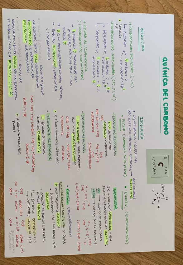 Esquema completo quimica del carbono examen PAU