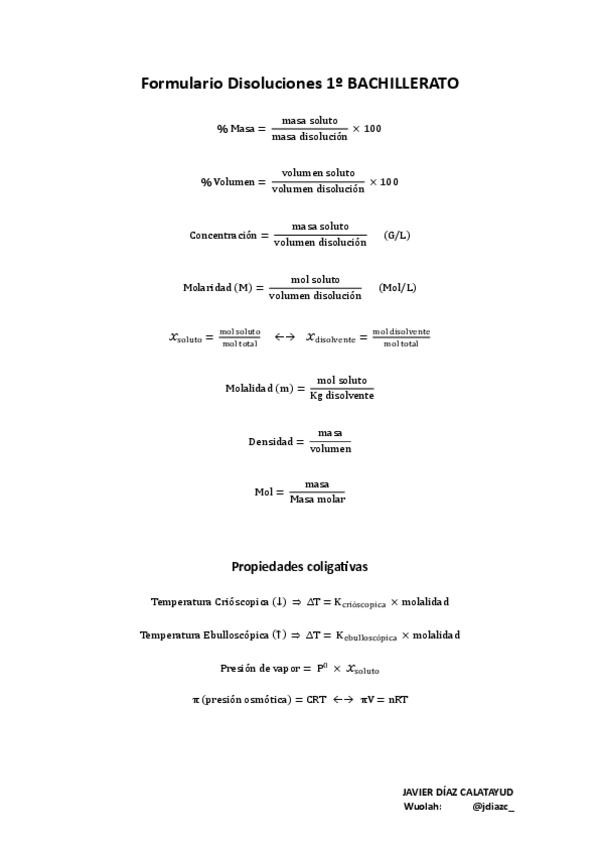 Formulario disoluciones. Física y química 1º Bachillerato