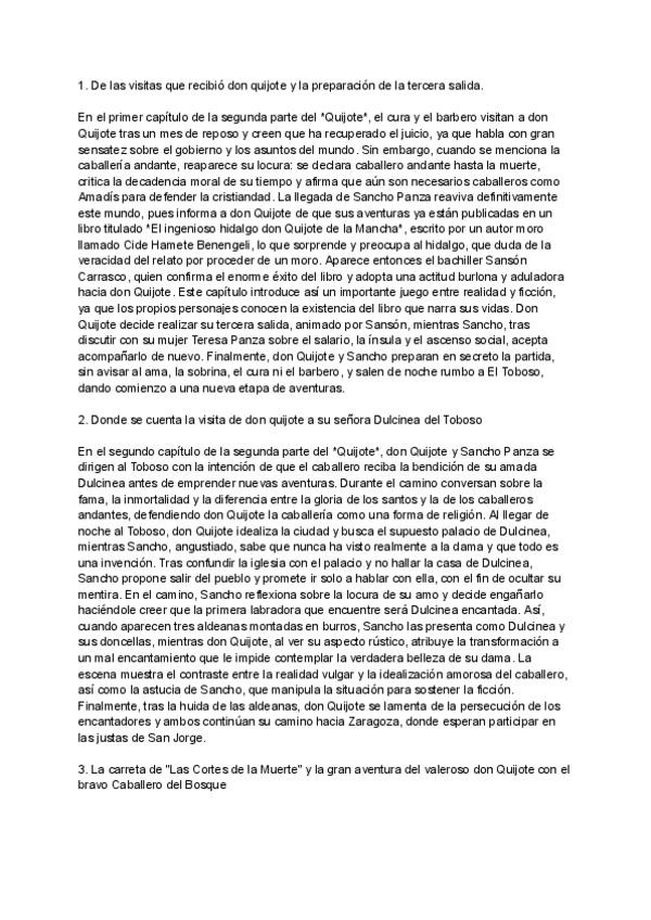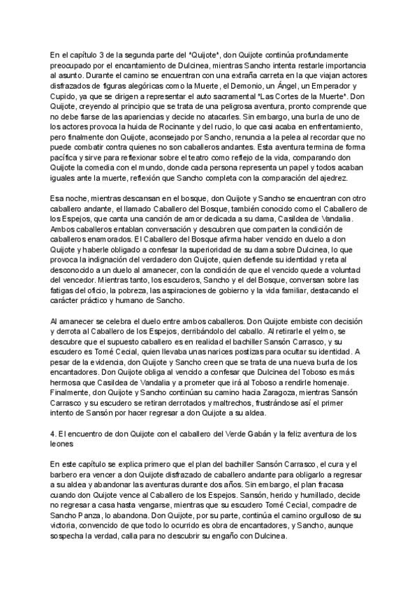 Resúmenes de todos los capítulos de la segunda parte de "Don Quijote de la Mancha"