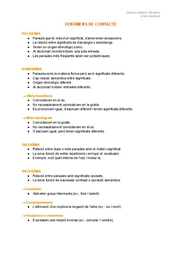 Apunts de fenòmens de contacte en català: polisèmia, homonímia, sinonímia i antonímia.
