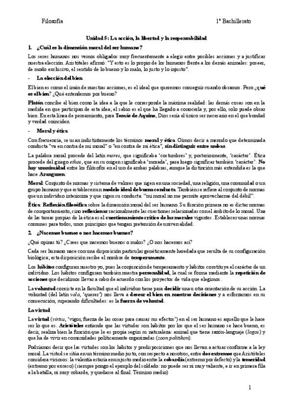 Unidad 5: LA ACCIÓN, LIBERTAD Y LA RESPONSABILIDAD FILOSOFÍA ( teoría y autores )