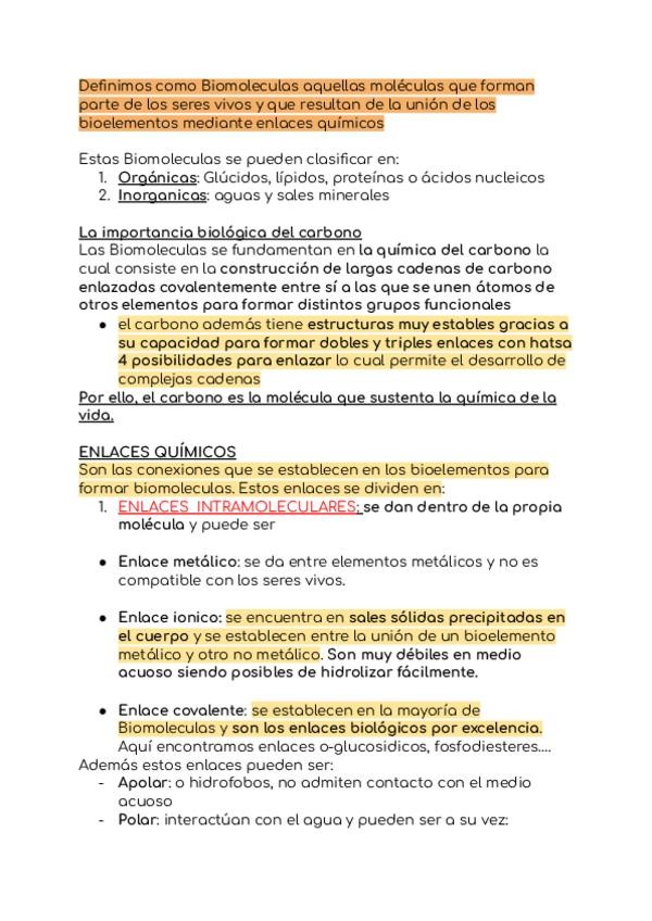 Apuntes redactados del bloque de Biomoleculas de biología sacados de una química para todos 25/26