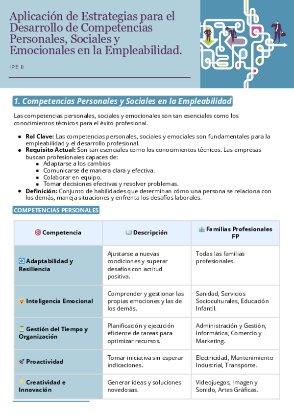Itinerario Personal para la Empleabilidad II. Aplicación de Estrategias para el Desarrollo de Competencias Personales, Sociales y Emocionales en la Empleabilidad.