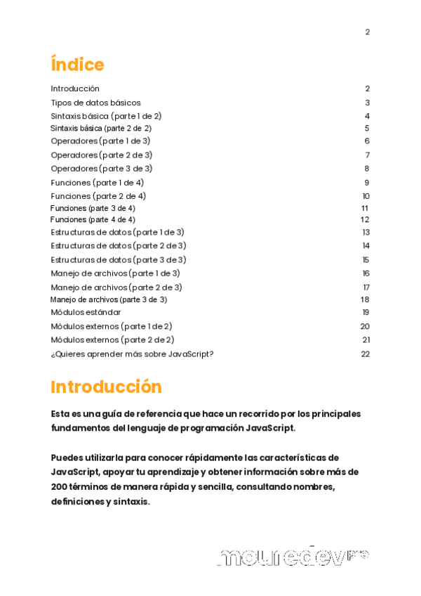 Guía de referencia, con más de 200 términos, que hace un recorrido por los principales fundamentos del lenguaje de programación JavaScript.