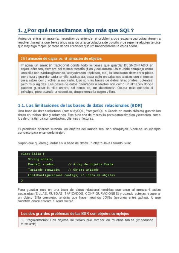 Resumen de bases de datos orientadas a objetos y objeto-relacionales