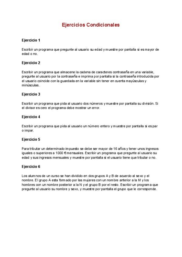 Ejercicios condicionales para practicar con cualquier lenguaje.