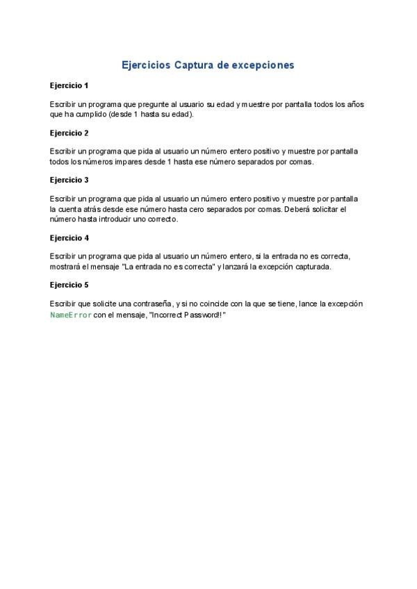 Ejercicios de capturas de excepciones básicos para entenderlas.